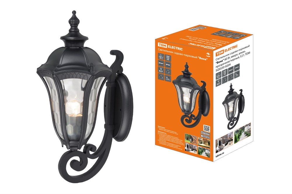 TDM Светильник садово-парковый "Вена" 60 Вт, вверх, алюм., прозрачное/черный, Е27 SQ0330-0204