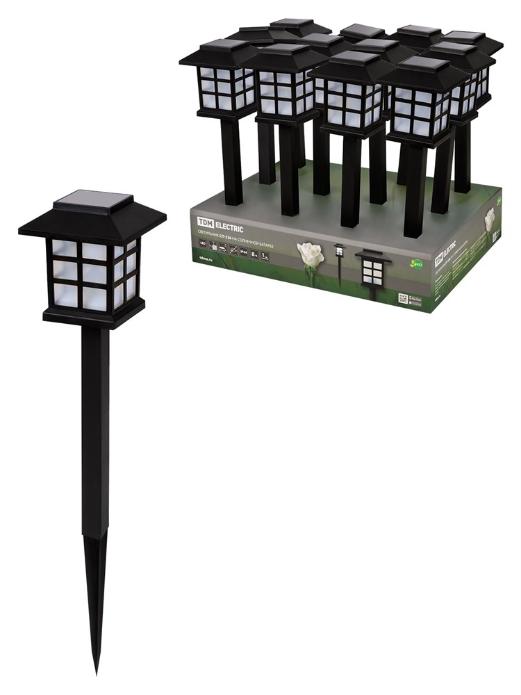 TDM Светильник СП-336 на солнечной батарее, 8,5х8,5х36 см, пластик, черный, ДБ SQ0330-0180