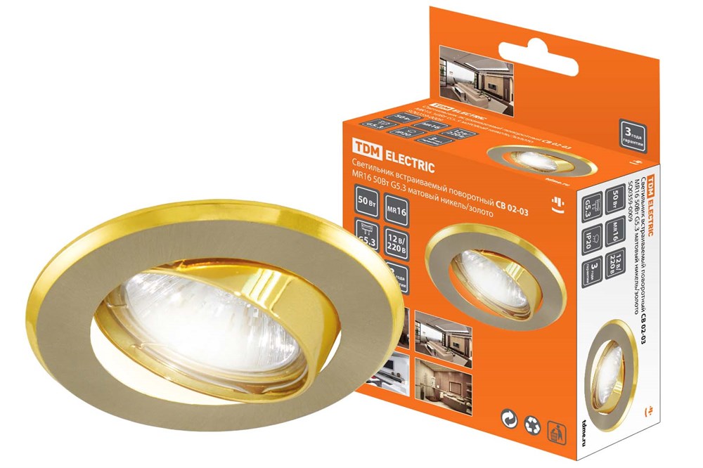 TDM Светильник встраиваемый поворотный СВ 02-03 MR16 50Вт G5.3 матовый никель/золото SQ0359-0009