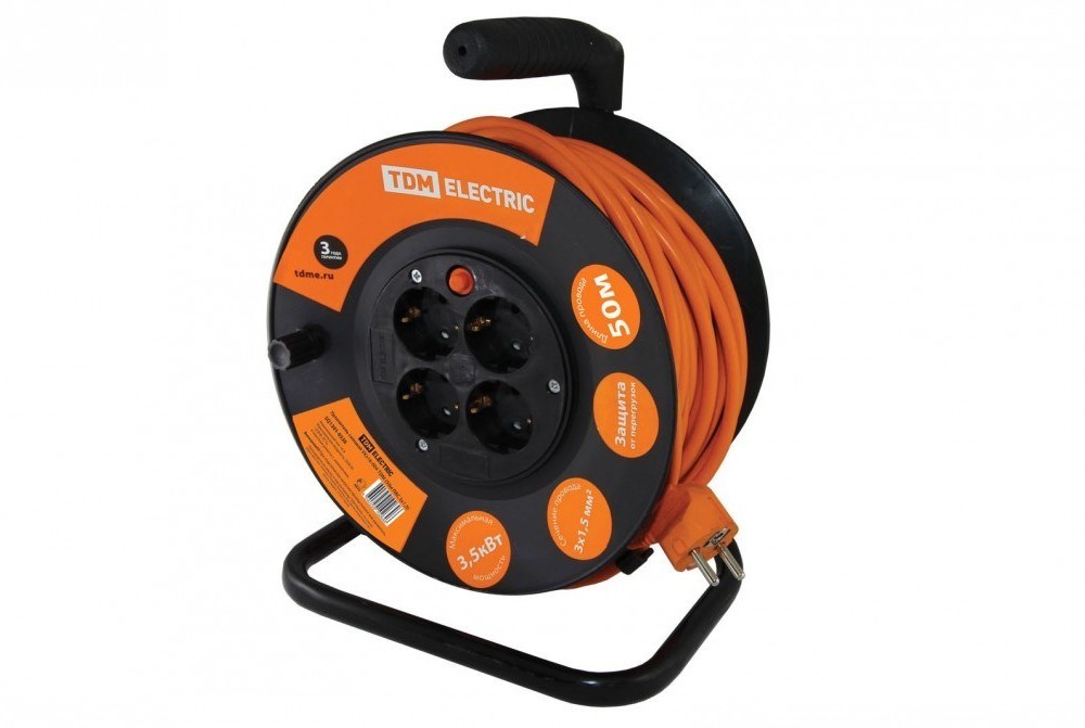TDM Удлинитель силовой на катушке УКз16-004 (4 места/50м ПВС 3х1,5) SQ1301-0536