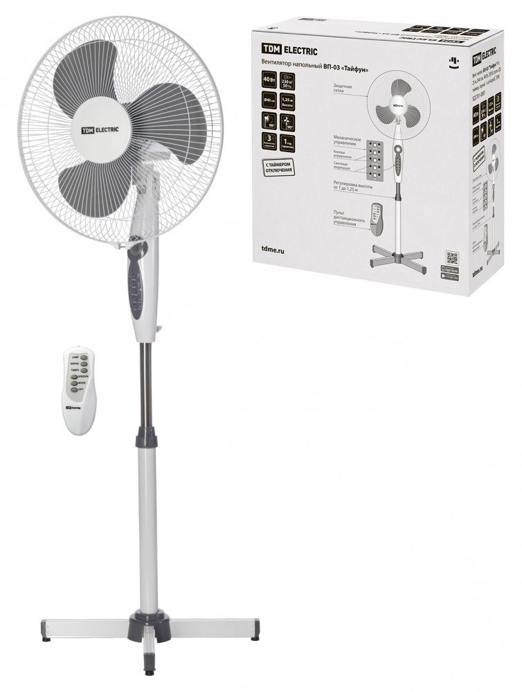 TDM Вент. напол, ВП-03 Тайфун" H1,25 м, D40 см, 40 Вт, 230 В, пульт ДУ, таймер, серый, 1 шт/короб" SQ2701-0007