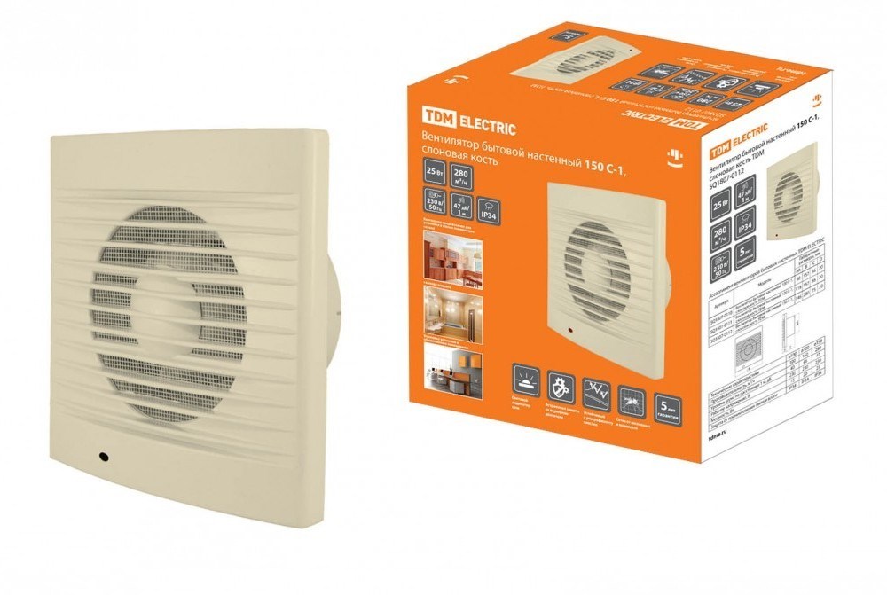 TDM Вентилятор бытовой настенный 150 С-1, слоновая кость SQ1807-0112