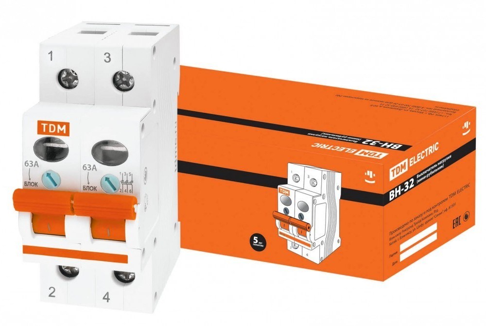 TDM Выключатель нагрузки (мини-рубильник) ВН-32 2P 63A SQ0211-0017