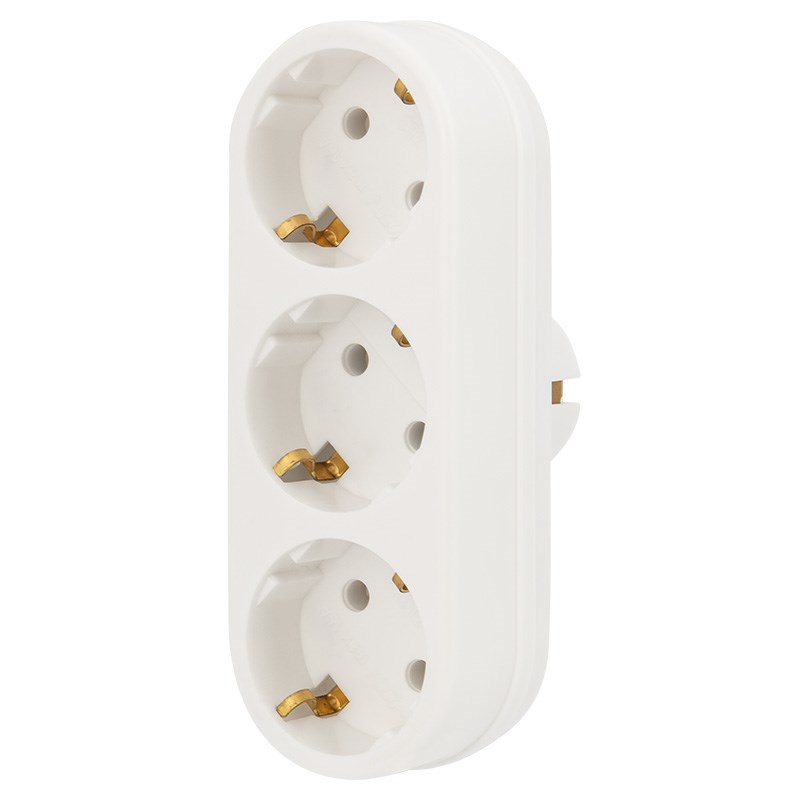 Тройник электрический линейный предназначен для подключения к электрическим сетям с напряжением 220 В. С его помощью вы сможете подключить сразу три электроприбора к одной розетке, будь то xолодильник, электрическая плита, электрический чайник, лампа, вентилятор, светильник и другие приборы бытового назначения.