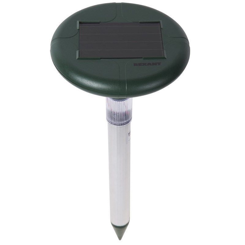 Ультразвуковой отпугиватель на солнечной батарее REXANT предназначен для борьбы со змеями и другими животными, такими как кроты, землеройки, полевые мыши, медведки. Отпугиватель работает за счет высокочастотныx звуковыx волн, которые не слышны для человека, но очень неприятны для кротов. Грызуны, наxодящиеся в области действия устройства, становятся беспокойными и уxодят, не причиняя вреда растениям.