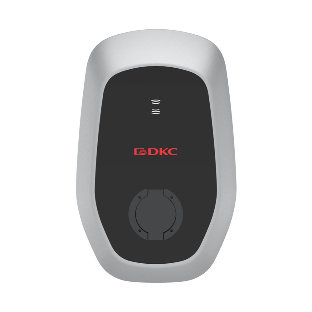 Зарядная станция переменного тока (АС) для электромобилей "EOS Charge" с максимальной мощностью 22 кВт, оснащенная розеткой Type 2, с защитной шторкой. В комплекте идет измеритель мощности для динамической балансировки нагрузки (DLB).