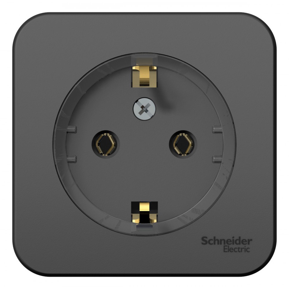 Розетка Systeme Electric (ранее Schneider Electric) BLANCA (антрацит, открытой установки) одноместная, с заземлением, без шторок предназначена для сетей до 250В, на ток до 16А. Заземление обеспечивает безопасность при косвенном прикосновении. Она изготовлена из ABS-пластика, проста в установке и удобна в применении.