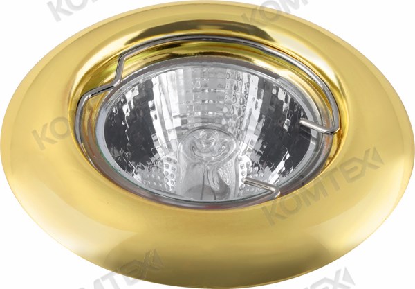 Светильник точечный штампованный неповоротный, максимальная мощность 50W, ГЛН/LED/КЛЛ GU5.3, диаметр 81мм, высота 31мм, вырезное отверстие 55мм, IP20, 220-240V, золото. КОМТЕХ