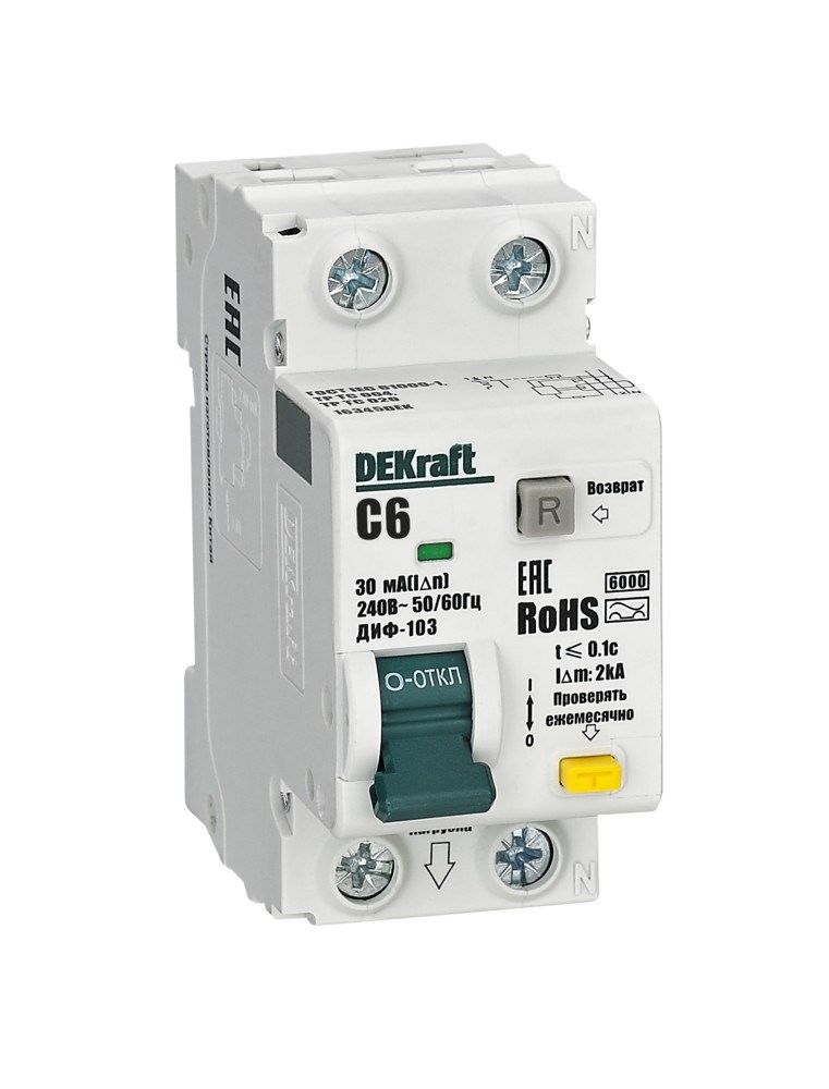 Dekraft АВДТ 1P+N 6А 30мА A х-ка C ДИФ-103 6кА 16345DEK
