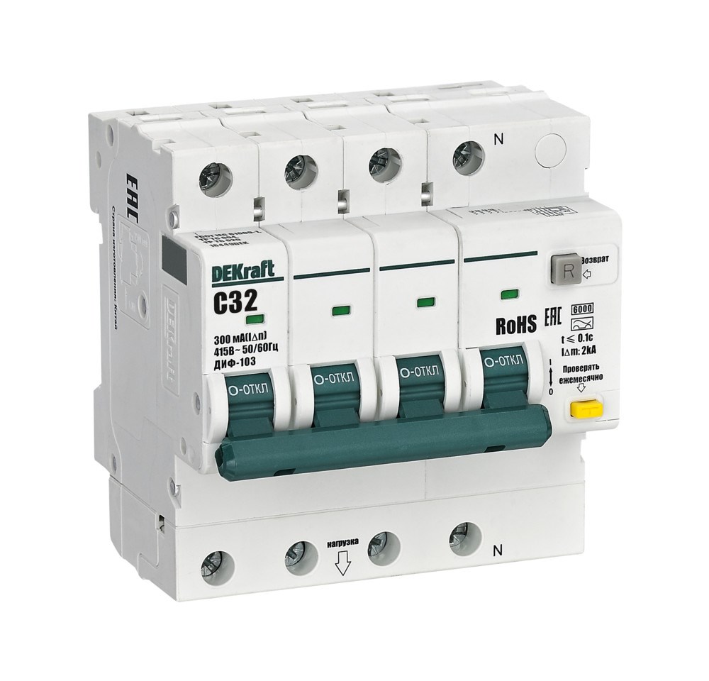 Dekraft АВДТ 3P+N 32А 300мА A х-ка C ДИФ-103 6кА 16449DEK