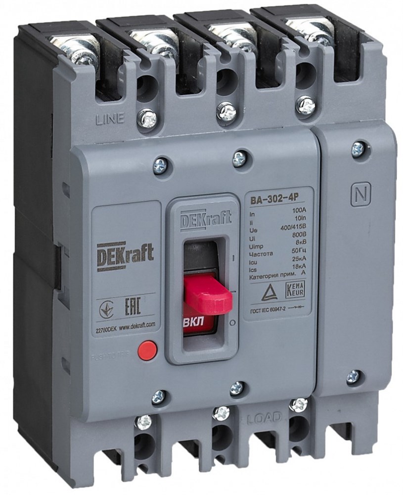 Dekraft Силовой автоматический выключатель 4P 80А 25кА ВА-302 22779DEK