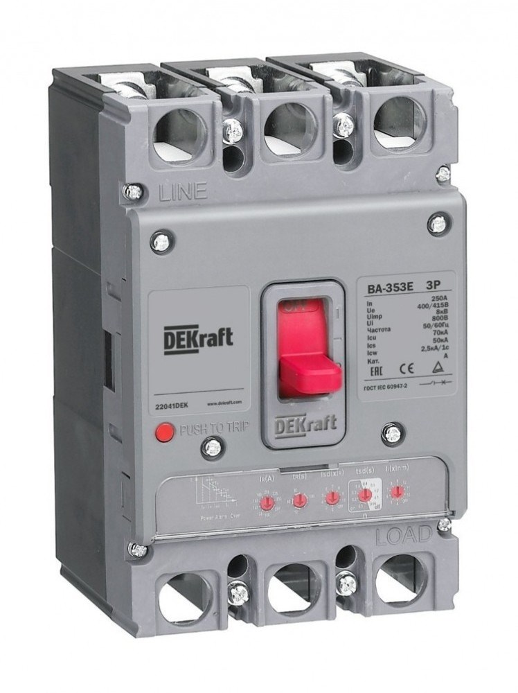Dekraft Силовой автоматический выключатель с электронным расцепителем 3P 125А 70кА ВА-353E 22661DEK