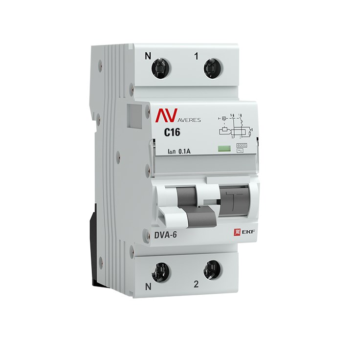 EKF Averes DVA-6 Диф. Автомат (C) 1P+N 16А/100мА тип АС 6кА rcbo6-1pn-16C-100-ac-av
