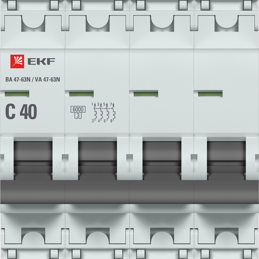 Автоматические выключатели ВА 47-63N 6 кА EKF PROxima являются обновлённой платформой успешно зарекомендовавших себя на рынке линейки автоматических выключателей ВА 47-63 6 кА EKF PROxima. Автоматические выключатели являются механическими коммутационными аппаратами и соответствуют ГОСТ IEC 60898-1. Особенностью данной серии является усовершенствованная конструкция. В выключателях имеются пластиковые крышки, закрывающие доступ к винтовым зажимам и служащие для опломбирования выключателей, что исключает несанкционированный доступ к проводникам. Корпус выключателей усилен дополнительными заклепками для обеспечения его максимальной жесткости. Выключатели оборудованы удобной рукояткой управления, обеспечивающей надежное оперирование аппаратами. На лицевой панели автоматических выключателей имеется цветовой индикатор реального состояния контактов. Конструкция двухпозиционного зажима обеспечивает удобный монтаж выключателя на DIN-рейку.