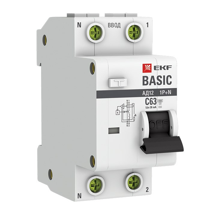 Выключатели автоматические дифференциального тока (дифавтоматы) АД-12 EKF серии Basic представляют собой аппараты, сочетающие функции автоматического выключателя с устройством защитного отключения. При обнаружении автоматическим выключателем в защищаемом участке сети тока утечки (повреждения) на землю или сверхтока (тока перегрузки или короткого замыкания) происходит срабатывание устройства, приводящее к отключению защищаемой сети.