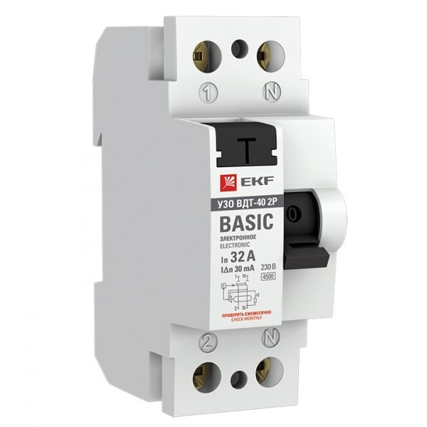 EKF Basic Устройство защитного отключения УЗО 2P 32А/30мА (электронное) elcb-2-32-30e-sim