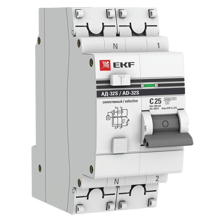 EKF PROxima АД-32 Диф. Автомат (C) 1P+N 25А/100мА тип АС 4,5кА , селективный DA32-25-100S-pro