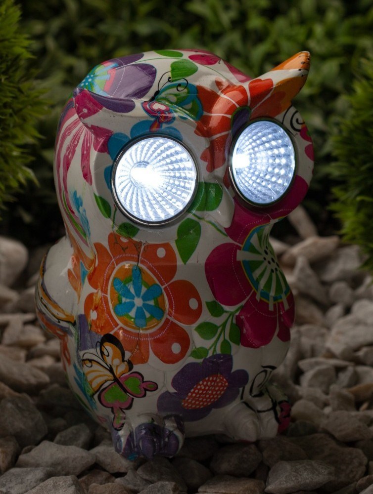 Садовый светильник ERAFYS01-04 "Птица" станет экзотическим дополнением на Вашей дачной территории. Небольшие внешние габариты позволят Вам разместить подсветку для сада около клумбы, украсить территорию рядом с прудиком, необычно подсветить аллею, деревья или вход в дом. Фигурка из полистоуна высотой 15 см с легкостью устанавливается в землю. Беспроводной led светильник работает на солнечной батарее. Данный вид получения энергии является наиболее экологичным, энергоемким и бесшумным. Питание происходит во включенном режиме, днем. С наступлением ночи маленькая сова "просыпается". Яркий белый свет ее глаз заливает пространство вокруг, создавая на участке особый, магический антураж. Пестрый рисунок на корпусе в виде разноцветных цветов прекрасно впишется в любой палисадник. Солнечная батарея рассчитана на 8 часов непрерывного освещения. Высокая степень пыле и влагозащиты позволяет оставлять светильник на улице даже в непогоду. Обращаем Ваше внимание, что перед использованием фигурки её необходимо включить и зарядить. Светильник заряжается в течение всего светового дня. Декоративный светодиодный светильник "Птица" от бренда ЭРА прекрасный вариант для преображения Вашего сада.
