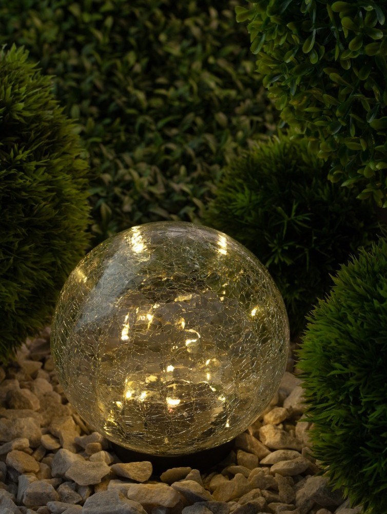 Волшебный садовый светильник шар ERASF012-24 станет эффектным источником света на Вашей загородной территории. Небольшие размеры позволят Вам спрятать светильник в саду, украсить прудик или бассейн, необычно подсветить цветы, аллею или вход в дом. Фигурка из пластика диаметром 15 см с легкостью устанавливается в землю. LED светильник функционирует на солнечной батарее. Данный тип получения энергии является самым экологичным, энергоемким, а также бесшумным. Питание происходит во включенном режиме, днем. С наступлением ночи шар загорается теплым белым светом. Создается ощущение, что внутри мелькает множество светлячков. Атмосфера волшебства окутывает территорию. Солнечная батарея предусматривает 8 часов непрерывной работы. Высокая степень пыле и влагозащиты, а также ударопрочность позволяют оставлять светильник в саду в непогоду. Обращаем Ваше внимание, что перед использованием фигурки её необходимо включить и зарядить. Светильник заряжается в течение всего светового дня. Садово-парковый светодиодный светильник шар от компании ЭРА чудесный вариант для украшения Вашей территории. Данный уличный декоративный светильник от торговой марки ЭРА применялся для преображения дачного участка в телевизионной передаче Первого канала "На дачу."