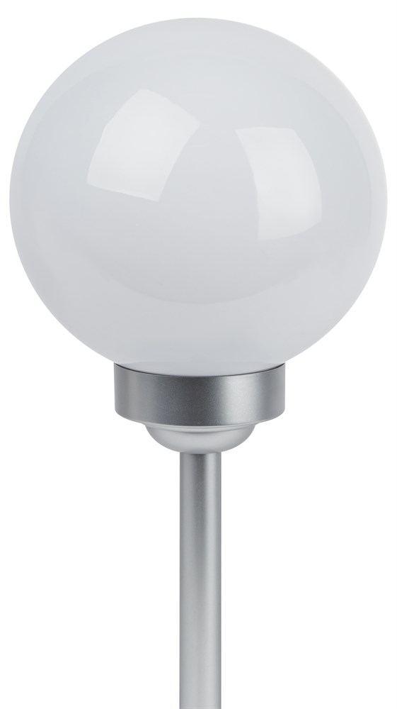 Садовый светильник традиционной формы шара, при этом с современным RGB-свечением - ЭРА ERASF22-55 "Шар" (арт. Б0057656). Сфера диаметром 20 см переливается различными световыми оттенками. Высота уличного светильника, защищённого от влаги и пыли - 62 см. Он быстро и легко втыкается в грунт. Ножка и основание под плафон окрашены стойким способом в трендовый цвет хром. Этот садовый RGB-светильник выглядит по-настоящему современно. Тренд на RGB-освещение уверенно перебрался на загородные участки. Рекомендуем купить новый RGB-светильник на солнечной батарее для оформления садовых дорожек, террас, газонов, клумб, альпийских горок. В любой части приусадебной территории такие яркие разноцветные светильники садовые создадут праздничное настроение.