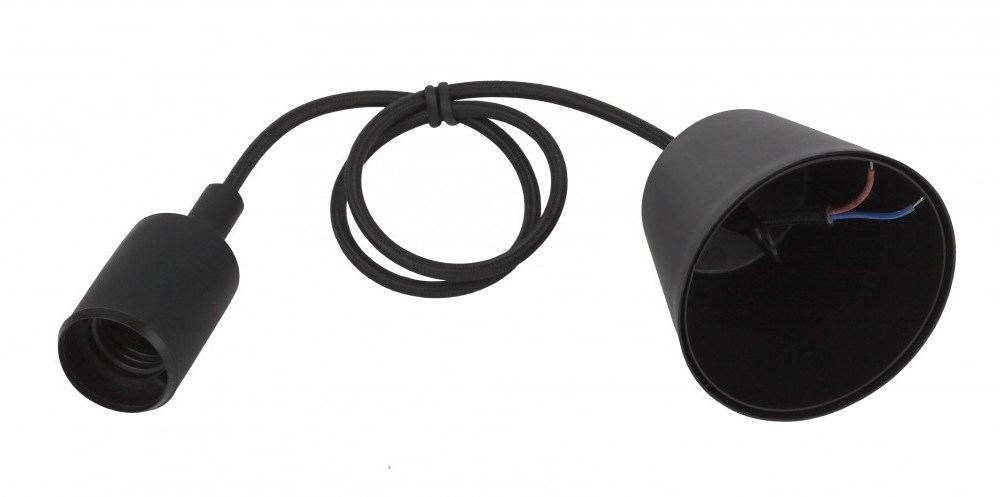 патрон с подвесом, длина провода 80 см, изготавливается из термостойкого пластика, материал химически устойчивый к агрессивным средам, обладает высокой прочностью и теплостойкостью; не обладает способностью выдерживать высокие температуры нагрева, поэтому его чаще всего используют для ламп накаливания мощностью не более 60 Вт. Есть регулировка длины шнура.