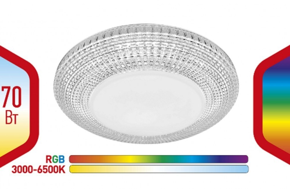Светильник светодиодный потолочный ЭРА SPB-6-70-RC серии Metz RGB отличается возможностью регулирования яркости светового потока и цветовой температуры. Пульт дистанционного управления имеет крупные кнопки с подсказками, очень удобен в использовании. Светильник можно расположить в уютной гостиной и менять яркость освещения в зависимости от настроения или необходимости. Цветовая температура регулируется в пределах от 4000 К до 6000 К. Диаметр корпуса составляет 50 см. Рассеиватель выполнен в виде сочетания белой матовой части и боковых сторон "под хрусталь" - изящно и утонченно. На стальном корпусе основания располагается светодиодная плата, оснащенная современным и надежным драйвером. Модель снабжена функцией RGB, позволяющую увидеть привычные вещи в необычных цветовых решениях.