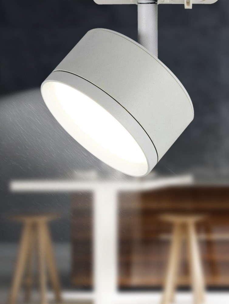 Однофазный трековый светильник под лампу с цоколем GX53 с плоским трековым адаптером. Корпус светильника выполнен из алюминия. Главной особенностью данной модели является компактный корпус, для такого вида светильников и утопленный трековый адаптер. Модель может быть достаточно яркой, при использовании ламп 12 ватт и создавать основное освещение, за счет широкого угла рассеивания GX53.