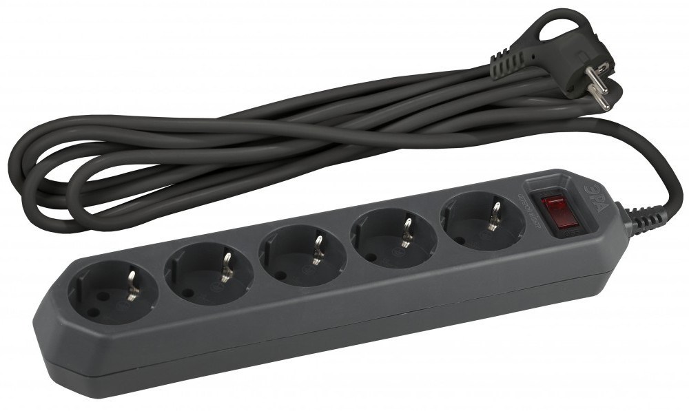 ЭРА USF-5es-3m-B Черный Сетевой фильтр базовая защита, с/з, с выкл, 5гн, 3м, ПВС, 10А Б0019034