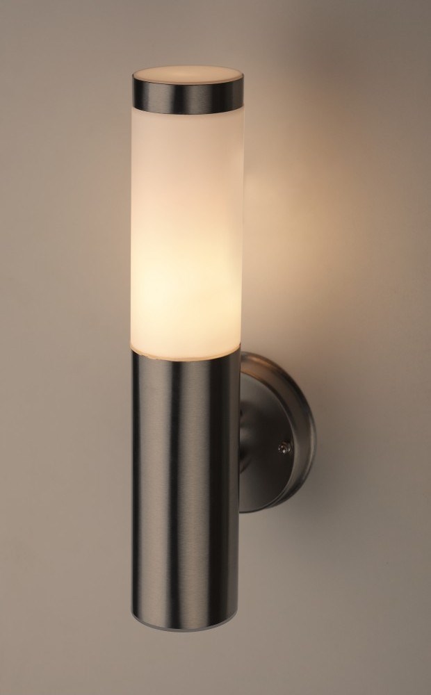 Светильник декоративный настенный WL17 создает интересные световые композиции, подчеркивает структуру материалов. Подходит для наружного уличного освещения и влажных помещений. Цоколь для источника света E27, напряжение питания 220В ~50/60Гц, материал нержавеющая сталь + пластик, цвет светильника хром/белый, размер 150*360*118 мм, D76 мм, максимальная мощность лампы 50 Вт, степень защиты IP44