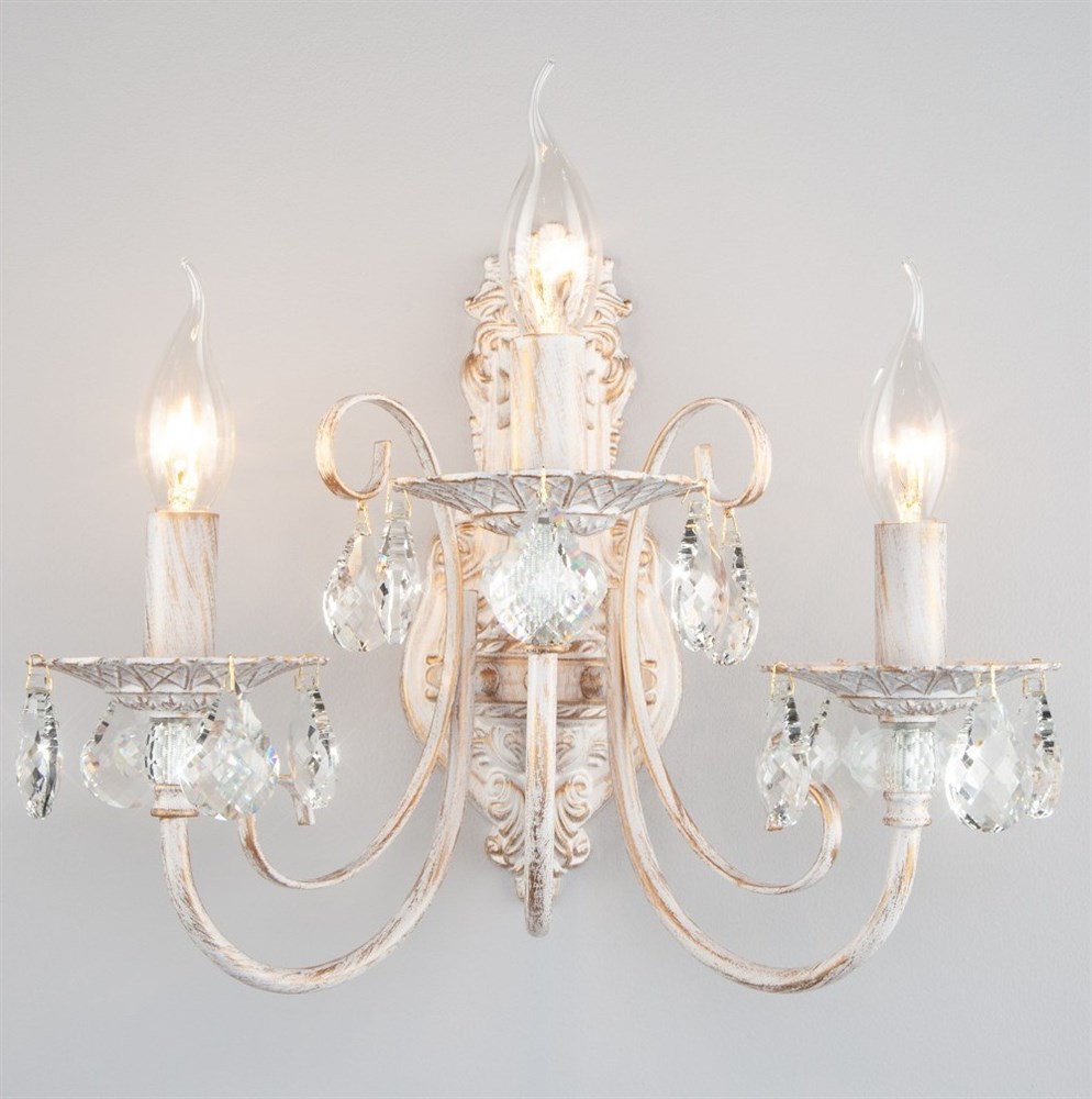 Eurosvet Бра с хрусталем 3305/3 белый с золотом / прозрачный хрусталь 00000065797