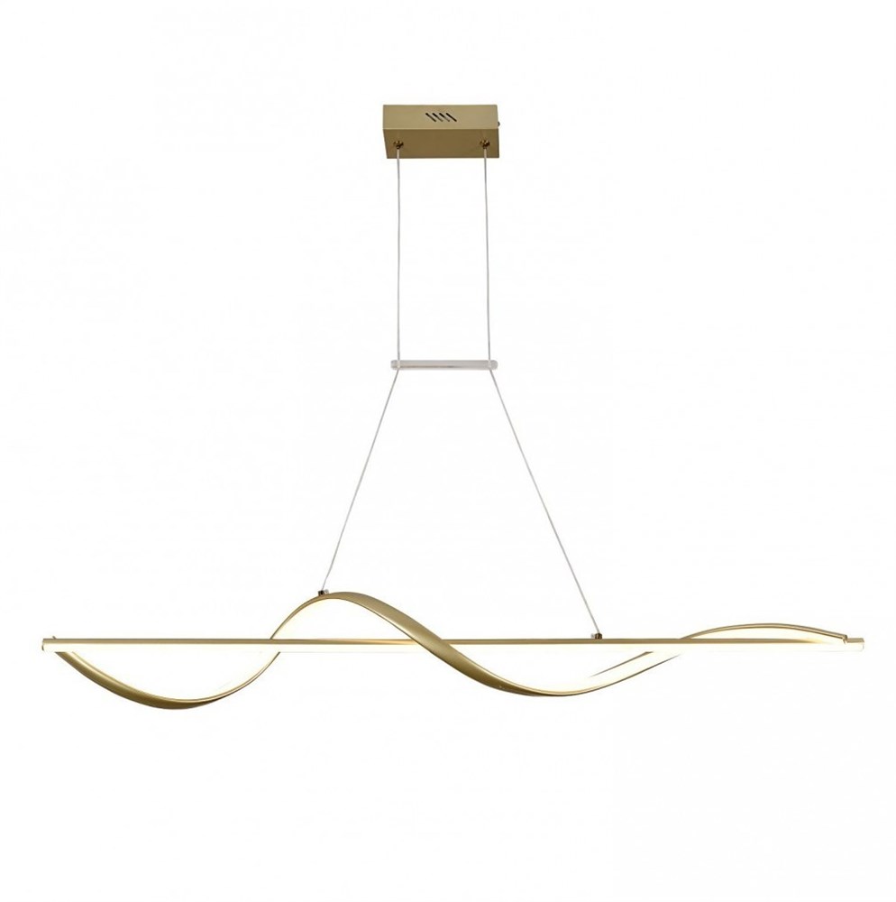 подвесная люстра, каркас золотго матового цвета, жесткий профиль со встроенной лентой LED декорирован гибким профилем , который так же оснащен лентой LED, оанащены пультом дистанционного управления