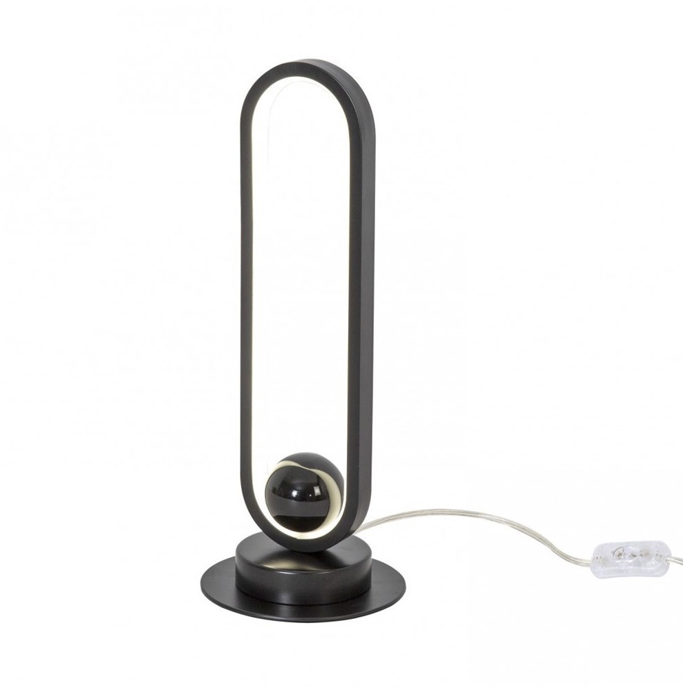 настольный светильник, металлический каркас матового черного цвета, глянцевое черное покрытие декоративного шара