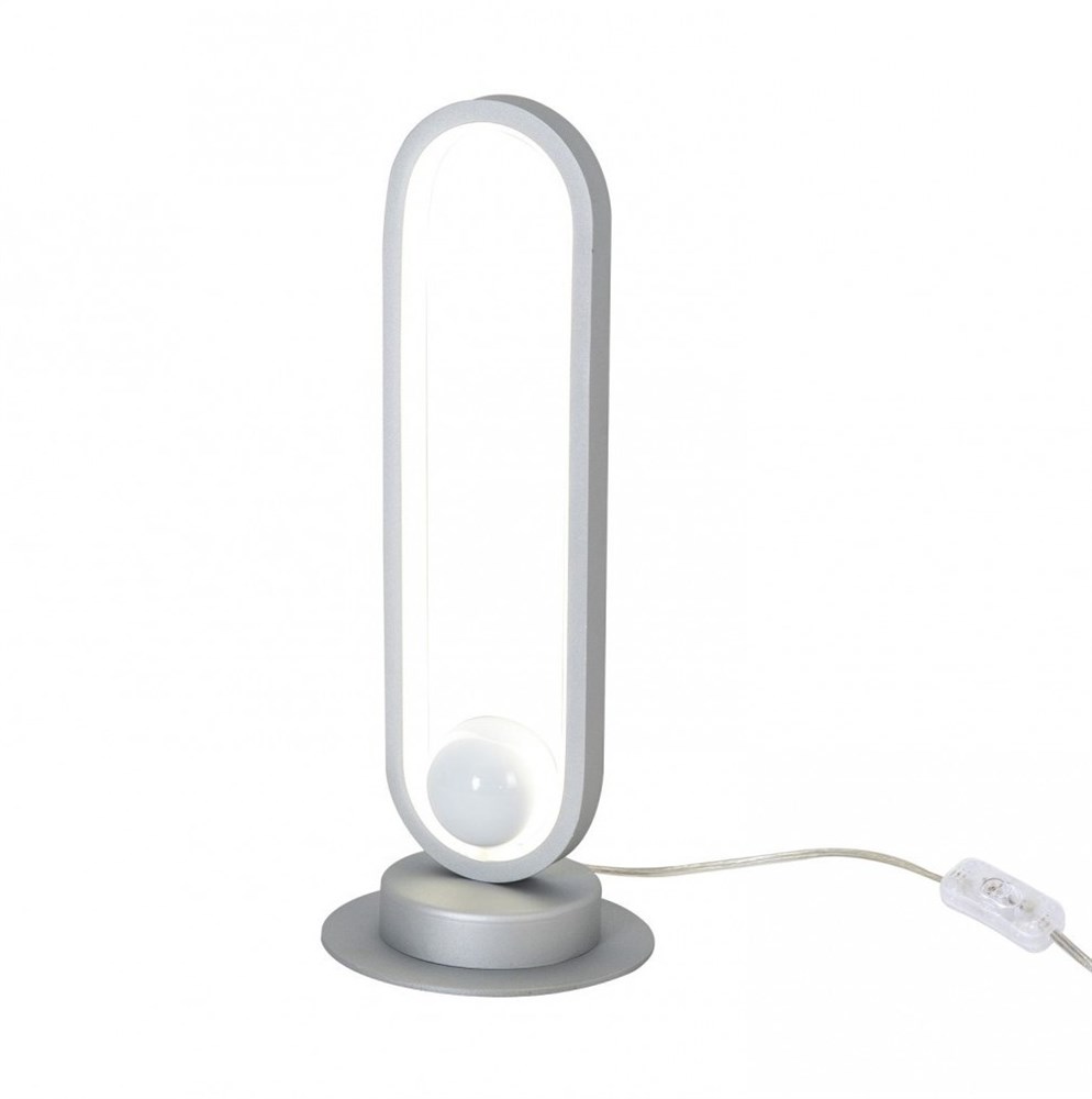 настольный светильник, металлический каркас матового белого цвета, глянцевое белое покрытие декоративного шара