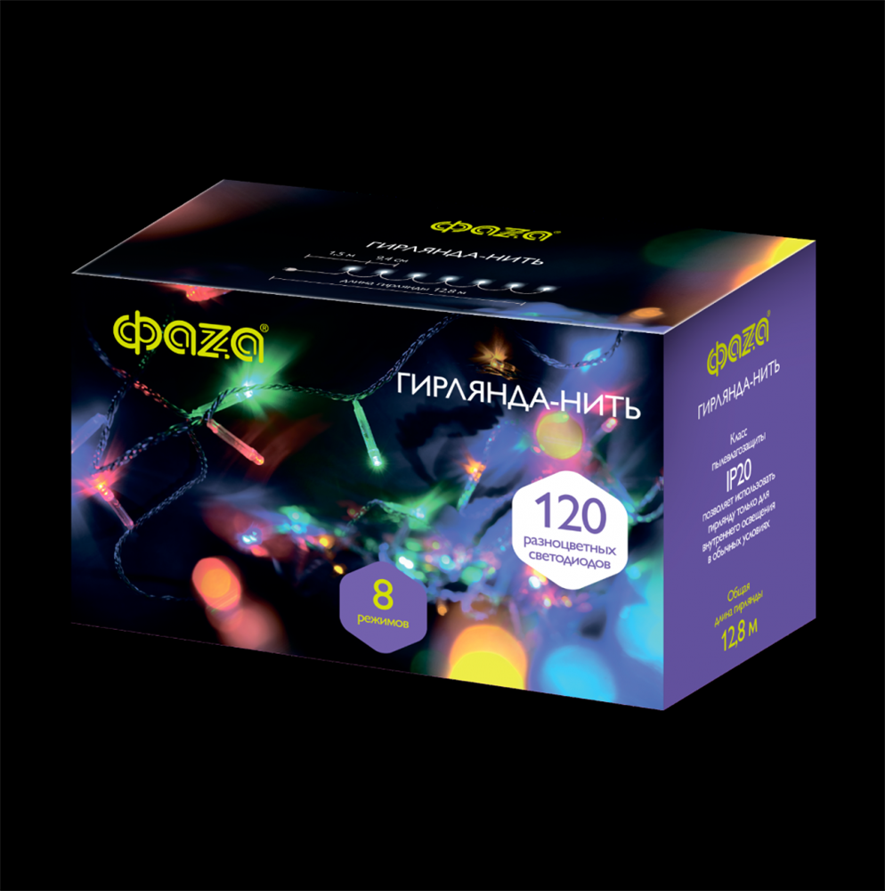 ФАZA Гирлянда AC-G01-120M, 120 мульт. LED, 12.8 м., 8 реж., 220В .5047655