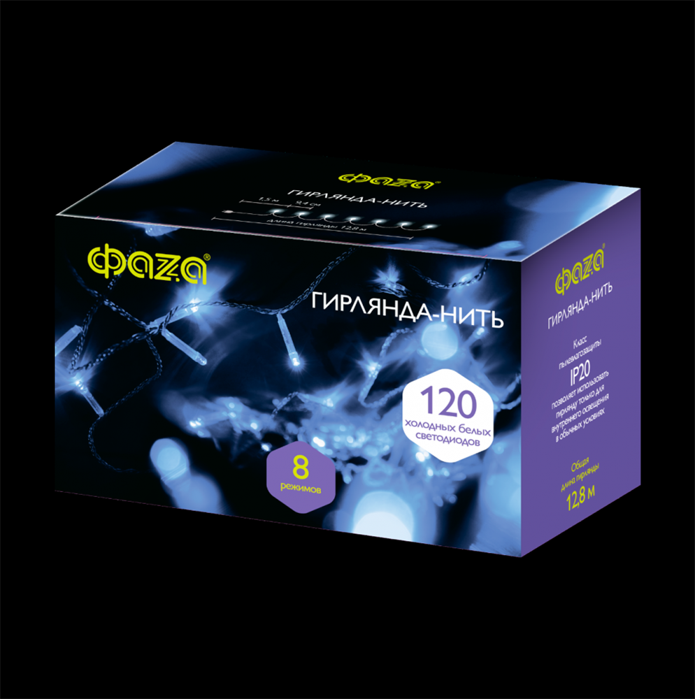 ФАZA Гирлянда AC-G01-120W, 120 бел. LED, 12.8 м., 8 реж., 220В .5047679