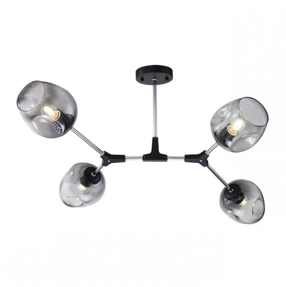 Серия светильников в современном стиле. Металлическая арматура черного цвета, плафоны из стекла с легкой дымчатой тонировкой. Благодаря небольшой высоте светильники серии Desi подходят для помещений с невысокими и низкими потолками. Потолочный светильник FR5006CL-04B; Высота-340; Высота при подвесном креплении--; Диаметр--; Ширина-700; Глубина-680; Цоколь-E27; Мощность-60W