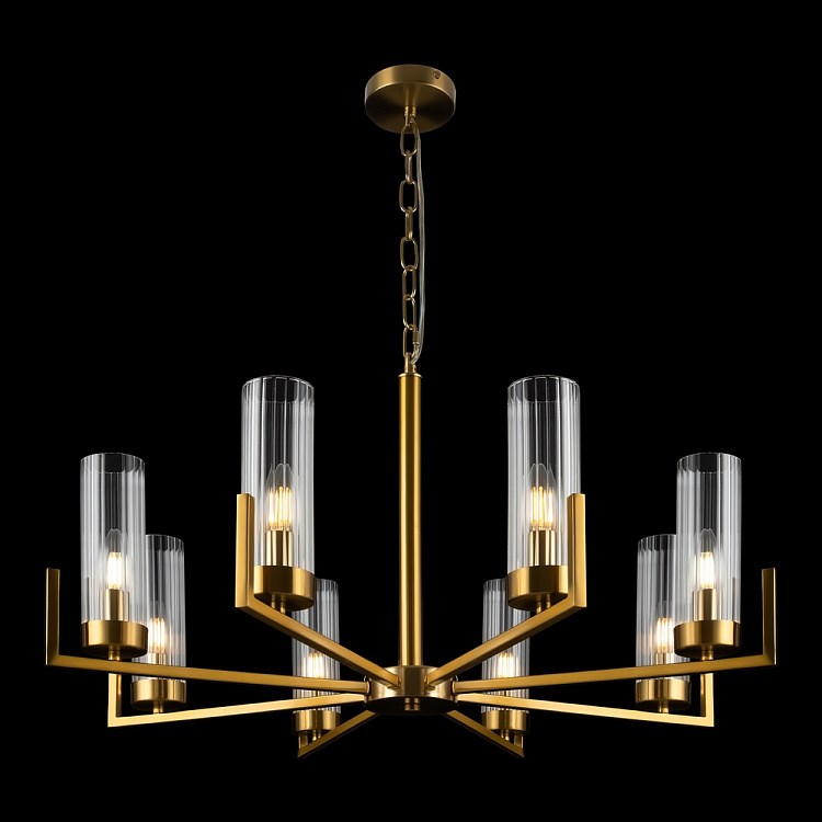 Дизайн на стыке классики и современности, выдержанная эстетика американского стиля в лаконичном исполнении. Adeline – выбор тех, кто ценит традиции. Арматура из металла представлена в оттенках хрома и латуни. Её строгий силуэт подчеркнут минималистичными плафонами-цилиндрами. Граненое стекло с ребристым рисунком – актуальный тренд, создающий модный контраст фактур. Направленные вверх источники света равномерно распределяют световой поток по комнате и визуально приподнимают потолки. В серию входят люстры на 5, 8 ламп и бра – вы можете сформировать комплексный световой сценарий с общим и зональным освещением. Элегантный дизайн актуален для интерьеров в стиле неоклассика, ар-деко, модерн.