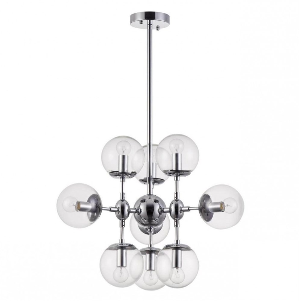 Стильные светильники Richard выполнены в современном стиле. Арматура из металла цвета хром". Плафоны в виде сфер сделаны из прозрачного стекла. Благодаря своему дизайну светильники выглядят невесомыми и станут украшением интерьеров в современном стиле." Подвесной светильник FR5596PL-09CH; Высота-450; Высота при подвесном креплении--; Диаметр-650; Ширина--; Глубина--; Цоколь-E14; Мощность-60W