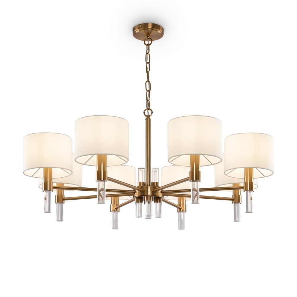 Серия Lino – это элегантная интерпретация современной классики. Металлическая арматура светильников окрашена в благородный оттенок латуни. Белоснежные тканевые абажуры мягко приглушают световой поток. Симметричность элементов создает легкий образ, а декор – прозрачные акриловые трубки – подчеркивает невесомость композиции. Комбинация фактур и материалов – модный тренд, добавляющий освещаемому пространству объема и глубины. Серия предназначена для комплексной подсветки интерьера, включает как общие, так и зональные источники света: подвесную люстру на 6 и 8 плафонов, одиночный подвес, настольную лампу, торшер и бра. Широкий выбор позволяет сформировать разнообразные световые сценарии в обстановках, оформленных в стиле неоклассика, модерн, ар-деко, эклектика.