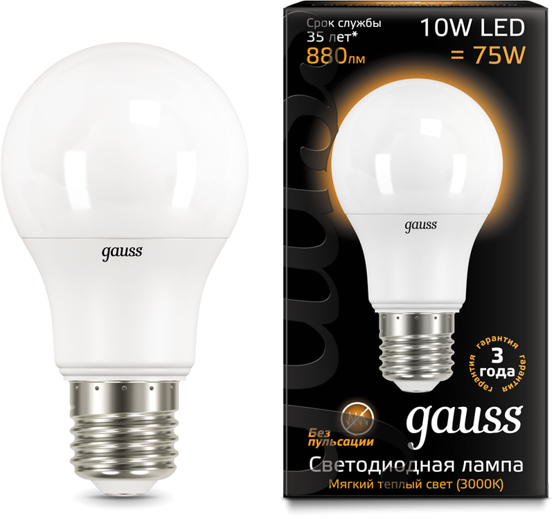 Gauss Лампа A60 10W 880lm 3000K E27 LED 102502110