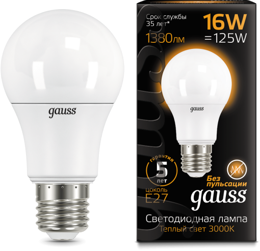 Gauss Лампа A60 16W 1440lm 3000K E27 LED 102502116