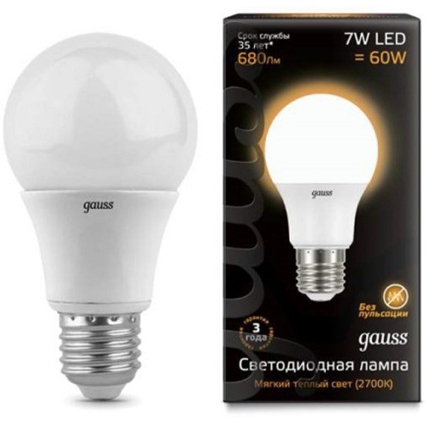 Gauss Лампа A60 7W 680lm 3000K E27 LED 102502107