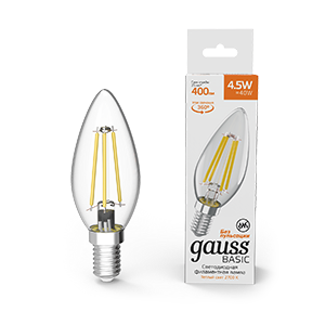 Gauss Лампа Basic Filament Свеча 4,5W 400lm 2700К Е14 LED 1031115