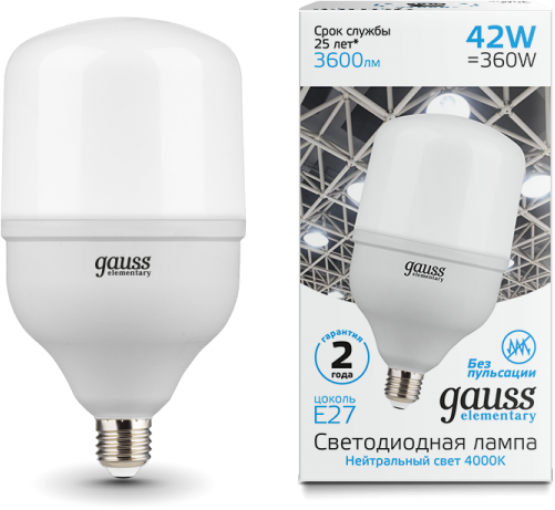 Gauss Лампа Elementary T120 42W 3600lm 4000K E27 LED 63224
