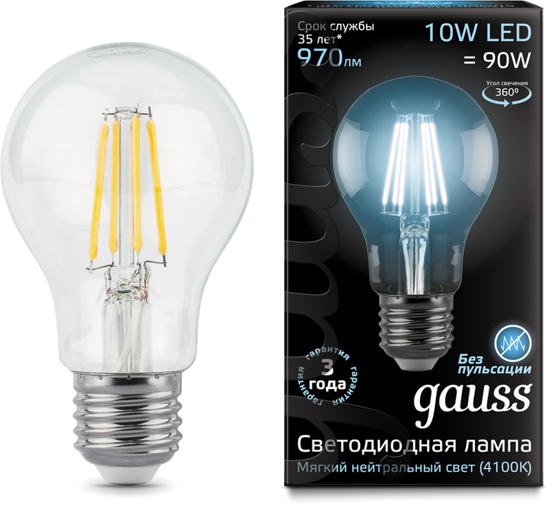 Gauss Лампа Filament А60 10W 970lm 4100К Е27 LED 102802210