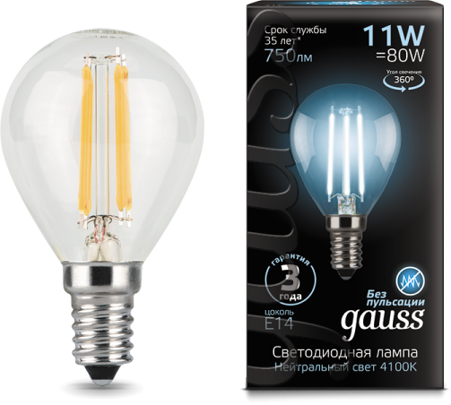 Светодиодные филаментные лампы GAUSS - это новейшие технологии в светотехнике. Лампы имеют привычный вид классических ламп накаливания, освещают пространство на 360о и дают больше света по сравнению с обычными светодиодными лампами за счет прозрачной колбы. Идеально подходят для хрустальных люстр и открытых светильников, а также для реализации дизайнерских решений, где важен вид классических ламп накаливания.