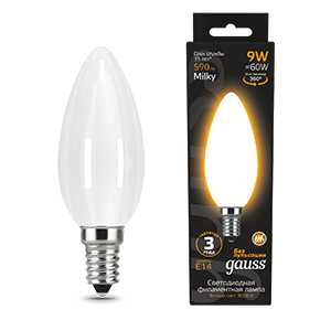 Gauss Лампа Filament Свеча 9W 590lm 3000К Е14 milky LED 103201109