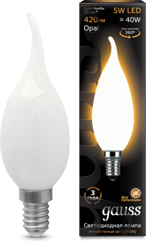 Gauss Лампа Filament Свеча на ветру 5W 420lm 2700К Е14 milky LED 104201105