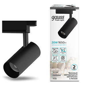 Gauss Светильник трековый цилиндр 20W 1760lm 4000K 180-220V IP20 65*206мм черный линза 36? LED TR084
