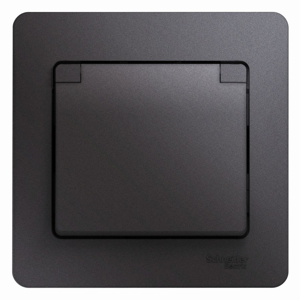 Розетка Systeme Electric (ранее Schneider Electric) серии Glossa (в сборе, цвет графит) одинарная с заземлением, шторками и крышкой подходит для сетей 250 В, на ток 16 А. - Заземляющий контакт обеспечивает дополнительную защиту от удара электрическим током. При наличии заземления электрический потенциал уходит в землю, защищая человека. - Выполнен из материала PС+ASA, стойкого к УФ-излучению и появлению царапин. - Эргономичные клеммы розеток расположены в один ряд.